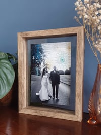 You can choose to have your embroidered photograph unframed, framed in a double glass wood effect frame, or in a black or white frame with mount.