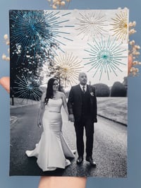 I then hand embroider your choice of metallic or matt threads to mimic fireworks exploding around you.