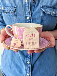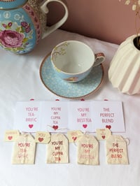 The tea bags are hand embroidered with a selection of different wording; choose from "You're my cuppa tea" "You're my best-tea" "You're tea-rrific" or "The perfect Blend" To make them that bit more special you can personalise the tag with your friends, or loved ones name.