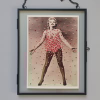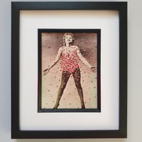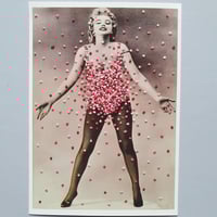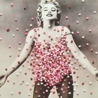 A beautiful giclee print of my hand embroidered french knots, exploding from Marilyn on a vintage postcard.