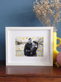 Would you like your keepsake photograph framed? Choose from a double glass wood effect floating frame, measuring 7.5 x 9.5 inch, or a white or black plain frame with mount, measuring 8.5 x 11 inch.