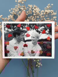 Your favourite photograph with be meticulously hand embroidered, with small coloured hearts surrounding your chosen image.