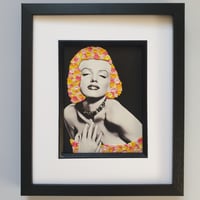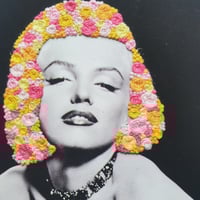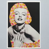A beautiful giclee print of my hand embroidered floral embellishment on vintage MarilynMonroe postcard.